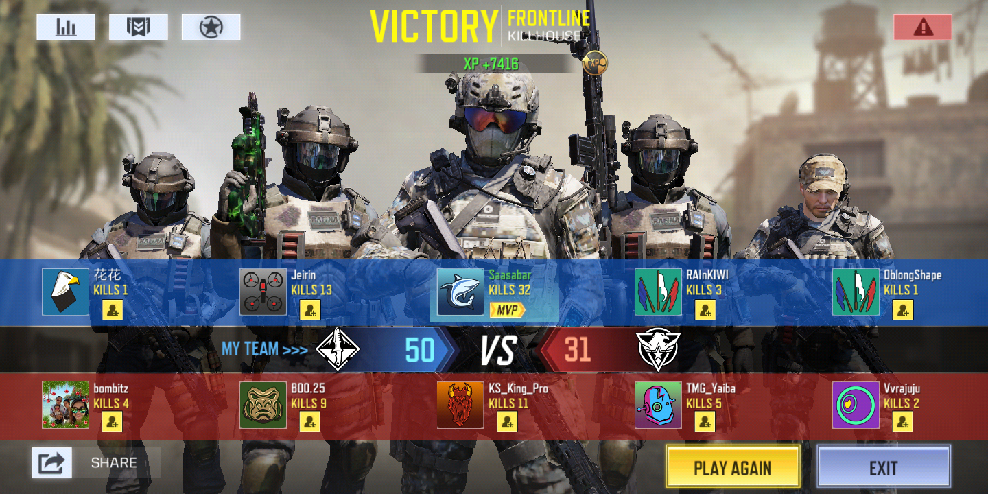 Hey there, thanks for your suggestion! This challenge is now official and can be found here: https://www.glitch.win/index.php?threads/cod-mobile-challenge-frontline-duty.1561/ 2 Glitch Credits have been added to your account.